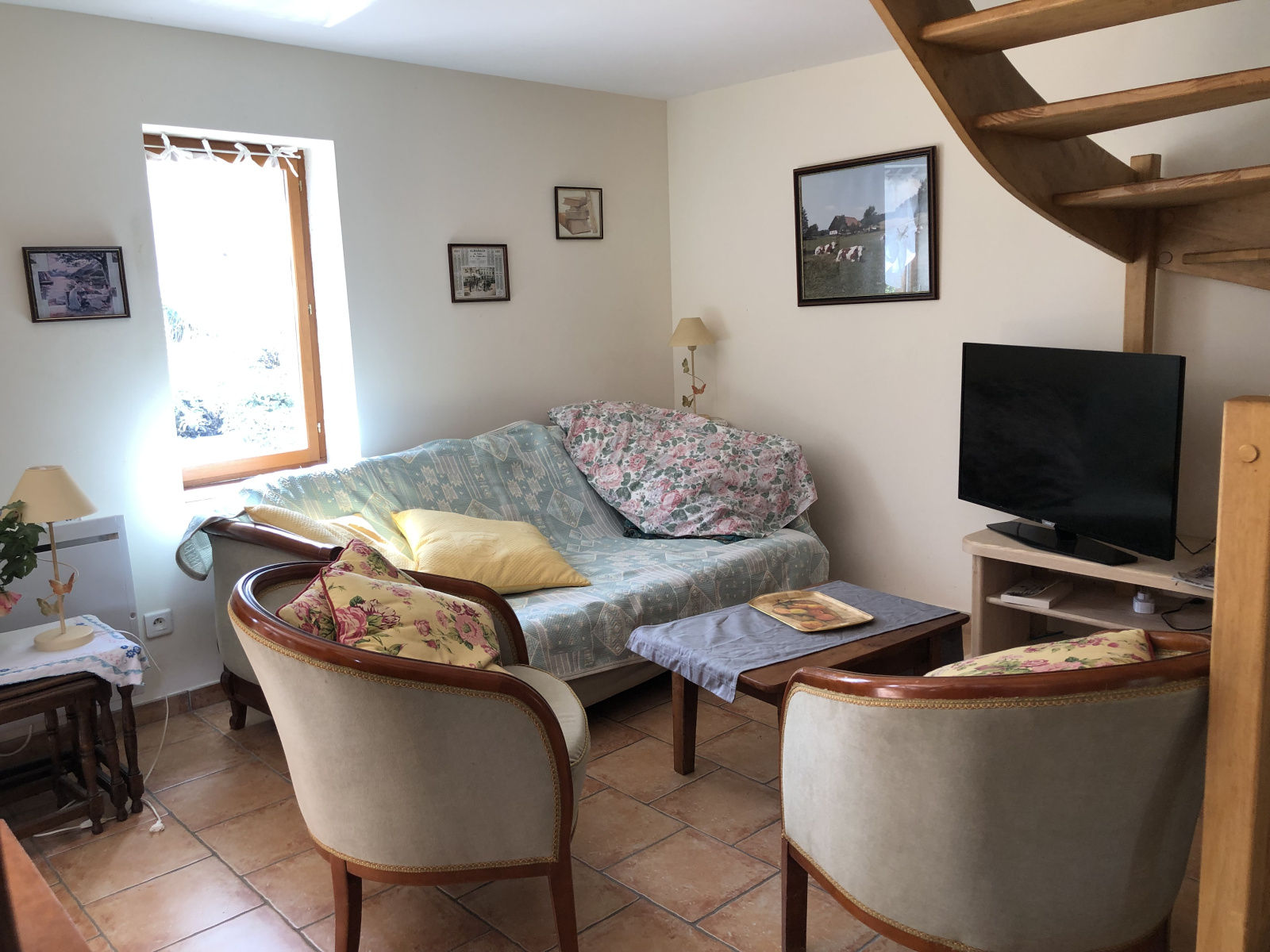 Un séjour-salon chaleureux avec poêle à bois,