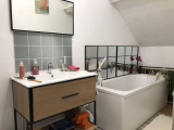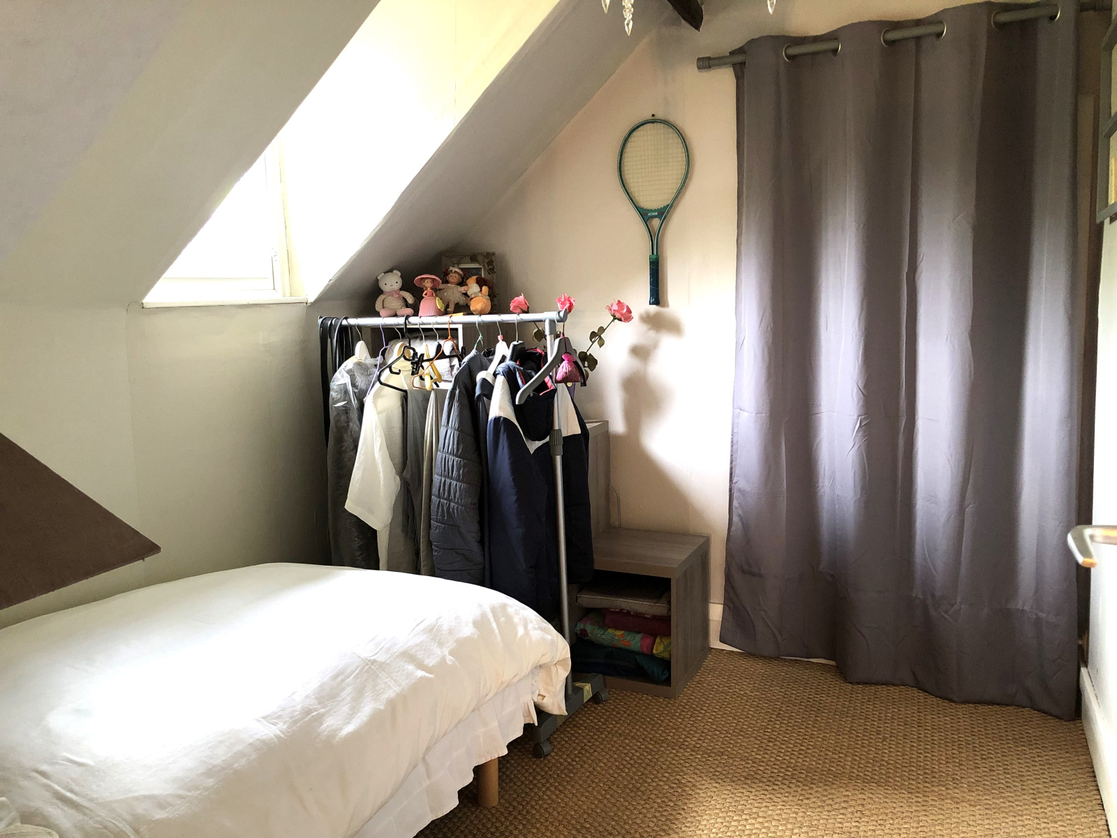 À l’étage, un palier dessert 2 chambres (dont une avec placard) ainsi, qu’une troisième pièce pouvant servir de chambre d’enfant ou de bureau. Une salle de bains avec WC vient compléter l’ensemble.