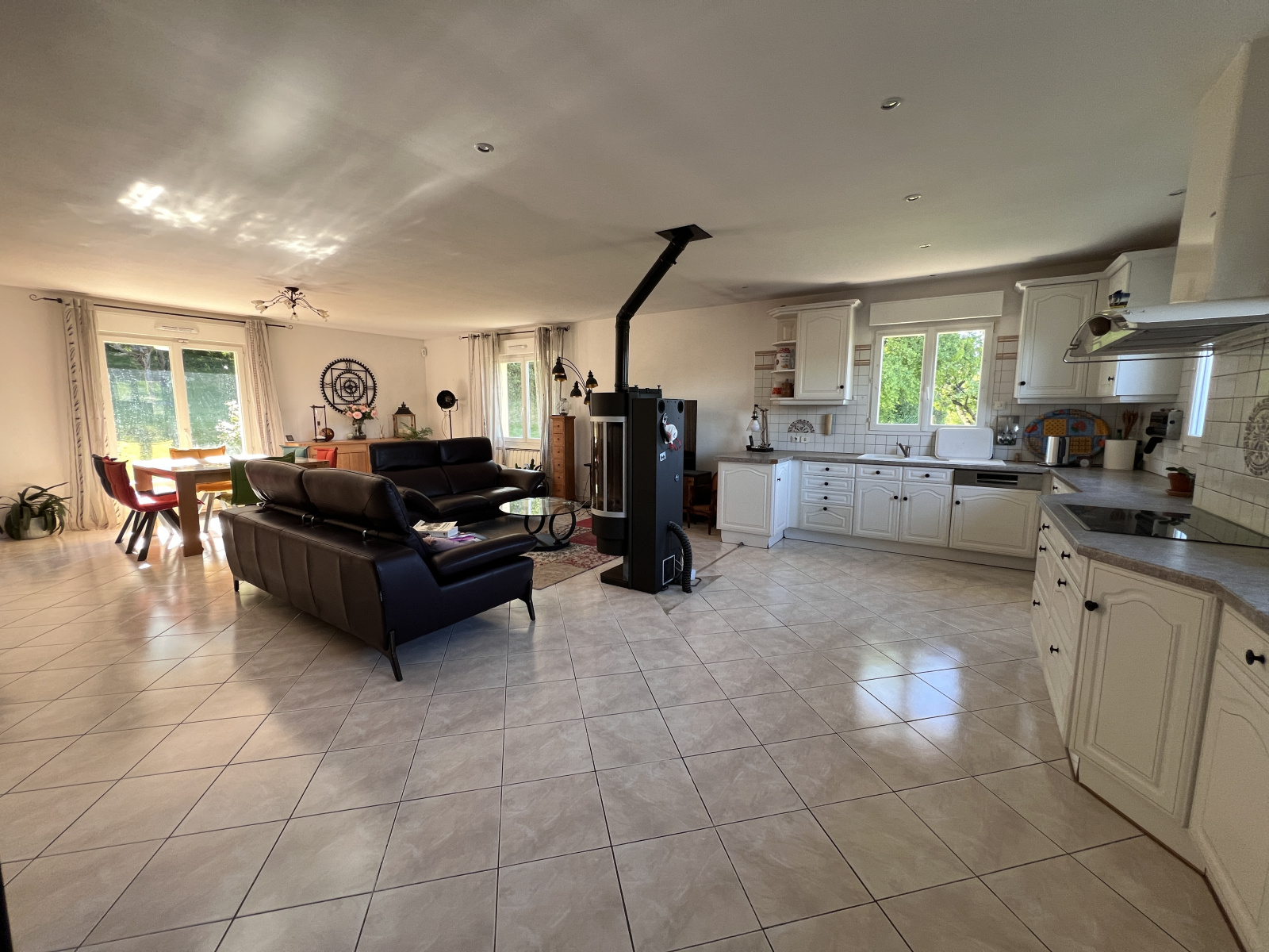 tout est réuni dans un espace fluide et convivial, réchauffé par un poêle à granulés.