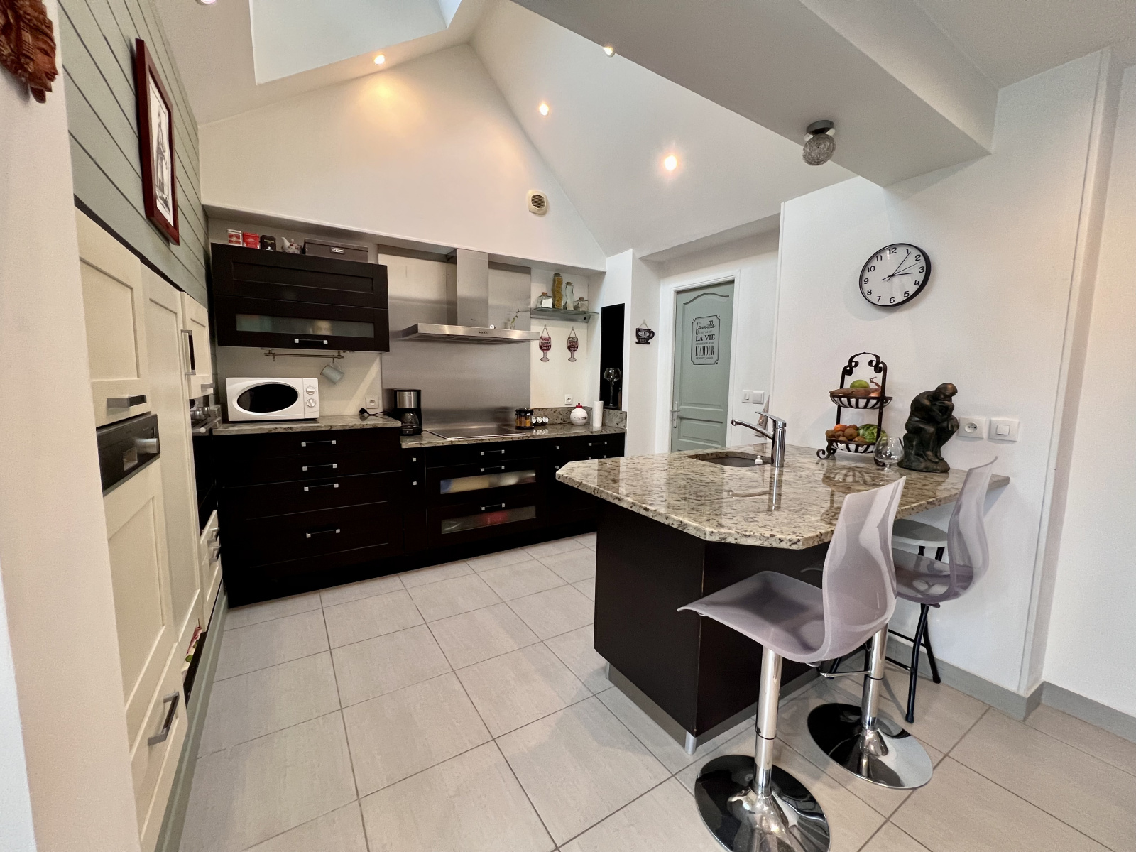 Au cœur de cet espace, la cuisine aménagée et équipée, ouverte sur le séjour, permet de cuisiner tout en restant connecté avec vos proches : un vrai plus pour les repas, les devoirs ou les soirées conviviales.