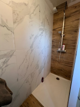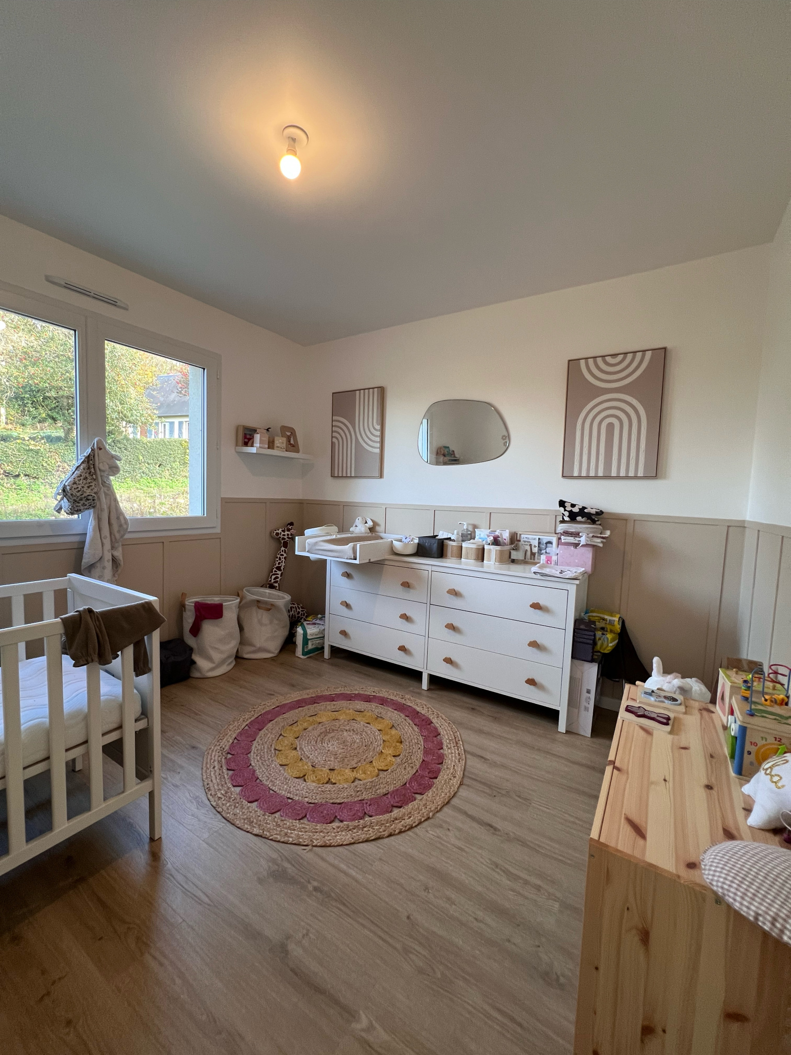 La partie nuit se compose de trois chambres, de deux salles d’eau (dont une à finaliser), et d’un chauffage au sol assurant confort et performance.