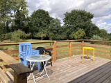 Une terrasse suspendue en bois permet de profiter de la nature dans un environnement paisible.